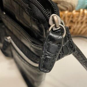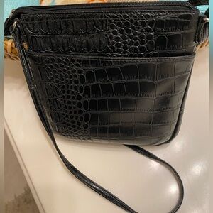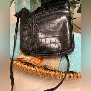 Elegant Black Faux Crocodile-Embossed Women's Crossbody Bag has adj straps EUC