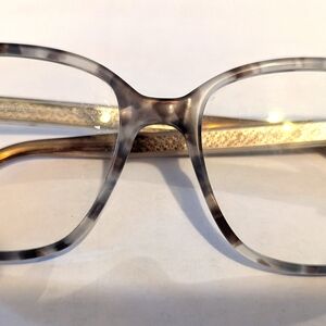 Chic eyeglasses with clear frames and gold accents. Ideal for a modern look.