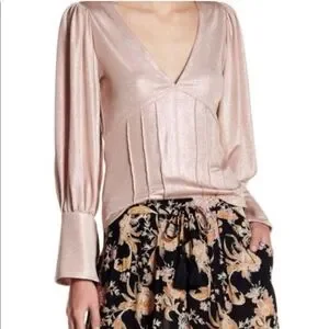 This elegant pink V-neck top is perfect for any occasion. Its soft fabric and stylish design offer both comfort and sophistication.