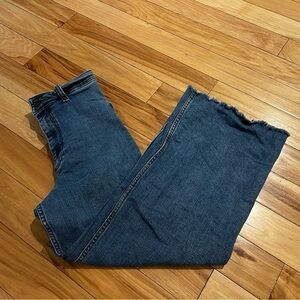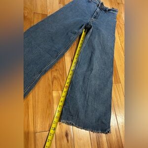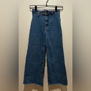 Zara Flare Wide Leg Denim Blue Jeans with Raw Distressed Hems - Women’s Size 2 - I feel like they run a a little small so please check measurement photos to confirm fit - with zipper and button closure - great condition - pre-owned.
