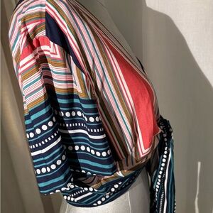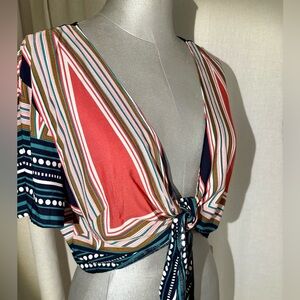 Lulus crop top, tie front top, geometric print blouse, boho summer top, festival outfit, beach vacation outfit, navy crop top, colorful print top, Lulus Geo Grande, short sleeve blouse, size XL crop top, trendy summer top, new with tags Lulus, resort wear, deep v-neck top, Poshmark Lulus