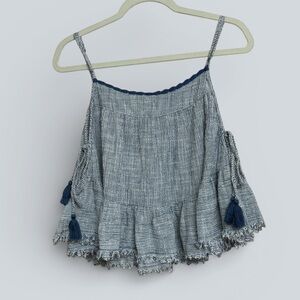 NWT Aerie Blue & White Striped Tassel Tie Peplum Tank Top
