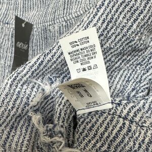 New with tags. Lightweight and comfortable with a soft, textured cotton knit. Features adjustable shoulder tie straps, a blue scalloped lace-trim neckline, and side ties finished with mini tassels. Made from 100% cotton with an easy, relaxed peplum fit. Perfect for warm weather and easy everyday wear.