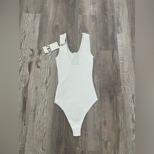 Zara white KNIT BODYSUIT WITH V-NECK BACK small
