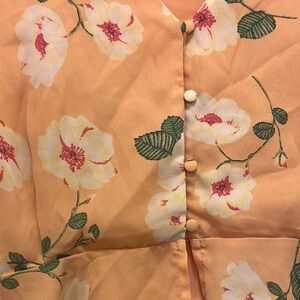 Leith Orange Peplum Blouse with Notched Collar and Long Sleeves