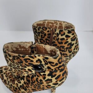 FUSION Women's Leopard Print Dressy Stiletto Button Accent Booties Size 7 Glam