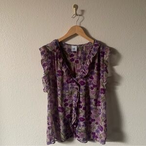 🥀FLASH SALE Cabi Trifle Sheer Flirty Floral Sleeveless Button Down Ruffled