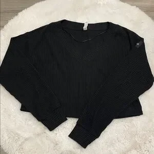 ALO Yoga Black V-Neck Ribbed Top
