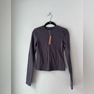 SKIMS COTTON JERSEY LONG SLEEVE T-SHIRT IN IRON XS