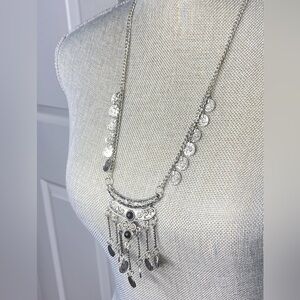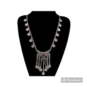 ANTIQUE BOHEMIAN SILVER TASSEL COIN NECKLACE #145