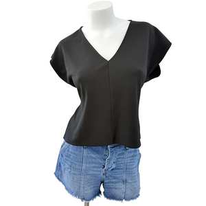 Black Boxy petal sleeve ribbed v-neck blouse short sleeve top xs express top