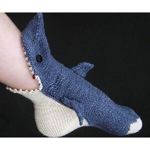 Knitted Shark Fun Socks Kids Adult Blue White Novelty Jaws Great White 3D Animal