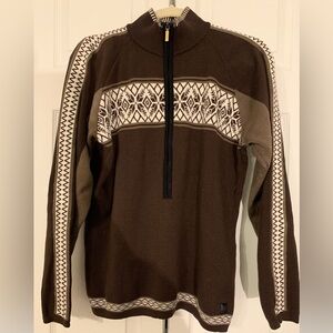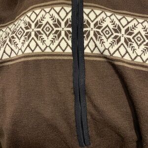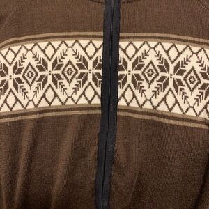 Dale Of Norway women’s gorgeous brown 3/4 zip snowflake sweater. Great details on arms and bottom. Like new condition! Size XL