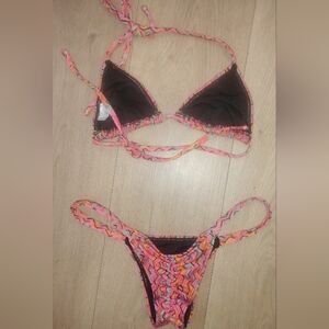 can't identify brand w/ this logo - if u know plz add a comment. triangle top & cheeky ruched bottoms. in excellent condition no signs of wear.