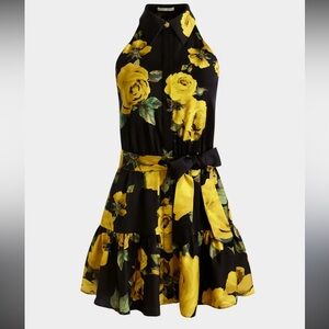 EUC: Alice + Olivia Miranda Black and Yellow Floral Tiered Mini Dress size 8