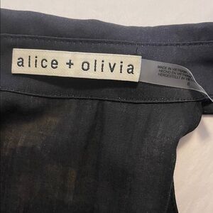 Alice & Olivia dress is a customer return. She’s in perfect condition, but someone did wear her with perfume. If you’re sensitive to this, you may need to dry clean prior to wearing or this might not be the right dress for you.