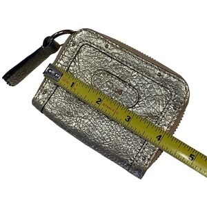 Chloe Metallic Crackle Leather Zip Coin Purse Pouch Gold Tone Hardware