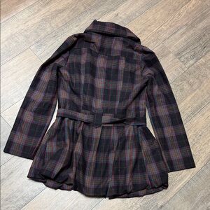 Stay stylish and warm with this elegant plaid pea coat. Perfect for any occasion. No size fits like small