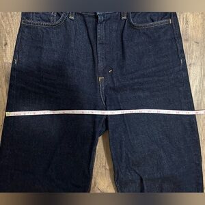 COS arch tapered jeans in indigo. Size 24 but fits bigger, I’d say fits size 26, see measurements in photos :)