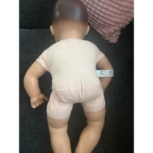 Embrace tender moments with this sweet American Girl Bitty Baby doll. Its gentle expression and soft body invite cuddles, perfect for sparking imaginative play and nurturing spirits. The simple, light pink romper with a subtle star detail offers a classic look, ready for countless adventures. Imagine the joy of tea parties or quiet storytelling sessions, creating cherished memories with this beloved companion. This doll is ideal for playtime at home or as a comforting presence during family outings.