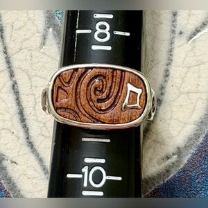 Silpada .925 Sterling Silver and Carved Wood “Live Your Life” Ring_Size 9_-R2023