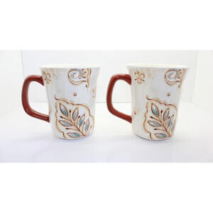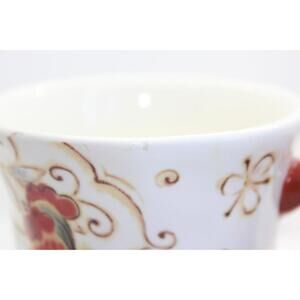 This Pier 1 Imports set of 2 Gallo Rooster Design coffee tea mugs is made of ironstone and ceramic, featuring a charming rooster pattern in a multicolor design. With a capacity of 14 fl oz, these round mugs are perfect for all occasions and are adorned with a farmhouse style theme. The mugs are decorated with a rooster character design, making them a unique and stylish addition to your kitchen or dining area. Made by Pier 1 Imports, these mugs are a set of two, ideal for serving coffee or tea to yourself or your guests.