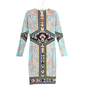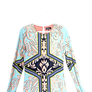 Hale Bob Women's Long Sleeve Light Blue with Pink and Black Dress
