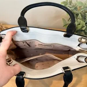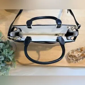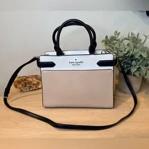 Kate Spade Colorblock Satchel Crossbody Black White Beige Gold