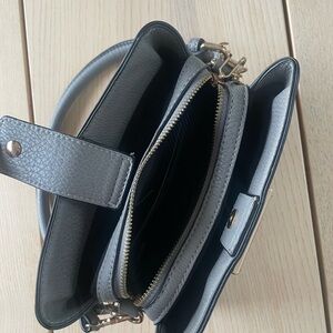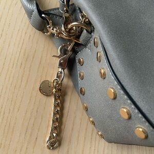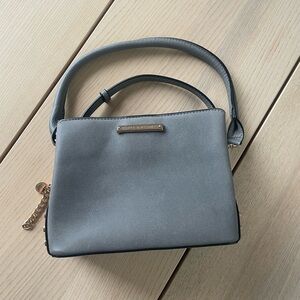 Sleek and stylish shoulder bag by Poppy and Peonies. Features a sophisticated gray tone, with gold hardware. Perfect for your next night out or date night!