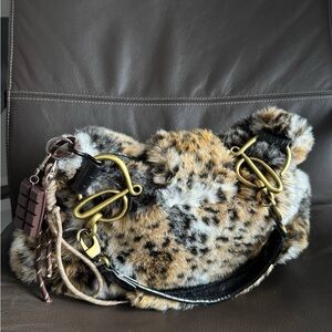 Leopard Print Faux Fur Handbag