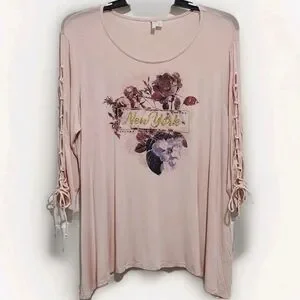 Cato Est 1948 Women's XL Pink 3/4 Lace Up Sleeve Tunic New York Lightweight