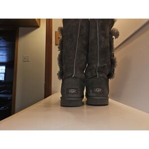 These Ugg Grey Women's Tall Boots in size 6 are perfect for the winter season. With a round toe shape, ultra-high heel, and mid-calf shaft style, they offer both comfort and style. The rubber outsole, sheepskin lining, and suede upper material make them durable and cozy. These boots are ideal for casual occasions and can be personalized for a unique look. With a classic design from UGG Australia, these tall boots are sure to become a staple in any woman's wardrobe.