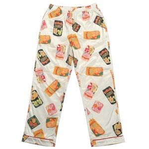 Playful and cozy SheShow Hawaiian Drinks pajama set in size Extra Small (XS). This adorable PJ set features a fun tropical cocktail / juice box print, classic button-up pajama top, and contrast piping for that timeless lounge look.