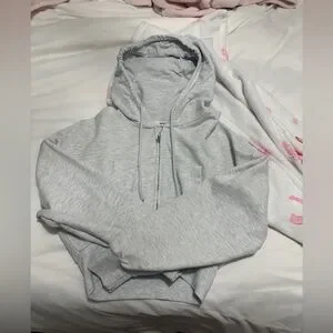 Light gray garage cropped zip-up sweater