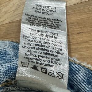 Chic light blue jeans with a straight leg design. Perfect for casual outings. Asymmetrical waist/button. Comfortable and stylish.