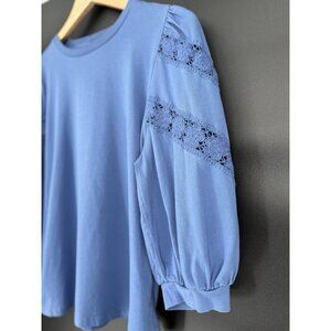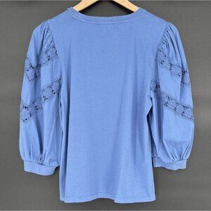 J.Crew Women's Floral Crochet Accent Puff Sleeve Blouse M Blue
