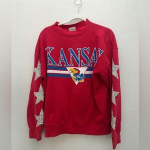 Furst of a Kind KU Kansas University Crystal Star Crewneck XL Reworked