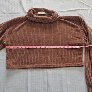 Altar’d State Ribbed Velvet Crop Turtleneck Puff Sleeve Top XS