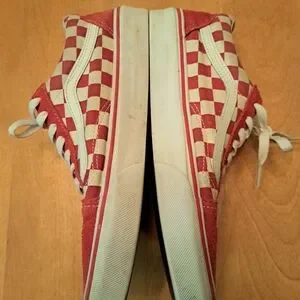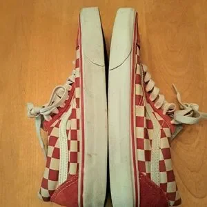 Vans Old Skool Red and White Checkerboard Canvas Sneakers Womens 8.5 Mens 7.