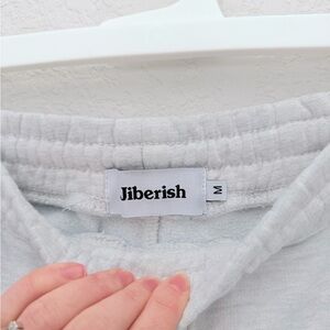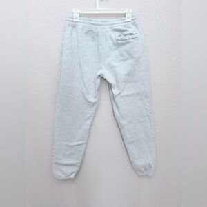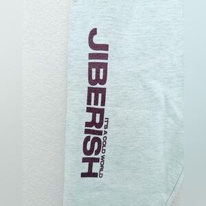 Jiberish sweatpants in light heathered grey with maroon graphics. Denver Colorado streetwear brand known for skiwear and snowboard culture. Relaxed jogger fit with elastic waist and drawstring. Cozy fleece feel perfect for winter layering or après ski vibes.