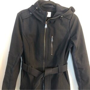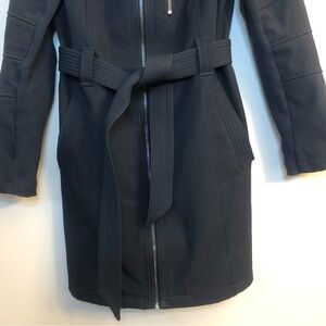 BCBGeneration Trenchcoat Hood Belt Front pockets Breast zipper pocket Colour: Black   Flat Lay Measurements: -Sleeve length from underarm 18.5" -Chest underarm to underarm 20" -Length from shoulder (midway between shoulder and neck) to hem at front 34" -Length from underarm to side hem 24.5" -Waist measured across 19" Size: Medium Care/Fabric Care Tag and Fabric Content Shown in Photos Great pre-owned condition. Stitching in underarms loose-shown in pictures. Light overall wear.  Taking Reasonable Offers 📦 Fast Shipping ⚠️ Use Measurements to be sure of fit when possible! Just a reminder that your review is about the product you received and the sellers service. It does not include Canada Posts delivery time – I ship same day or next day depending on the time of sale. Thank you! Happy Shopping!