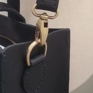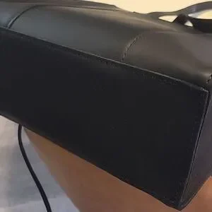 Elegant black tote with crossbody and shoulder straps. Smooth leather. Outside and inside drop pockets. Never used; new with tags. 13" tall x 12" x 5.5"