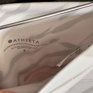 Athleta chic white leggings with subtle gray pattern. Ideal for active wear.