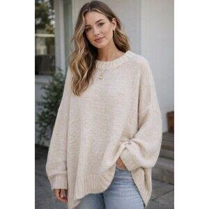 Aerie Sweater Extra Large Oversized Knit Wool Alpaca Blend Cream Cozy Relaxed