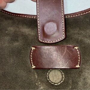 Lands’ End Suede Leather Hobo Shoulder Bag Purse Olive Green Key Clip