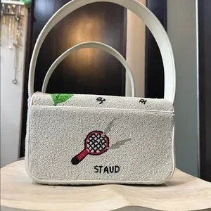 STAUD White Shoulder Bag with Colorful Embroidery
