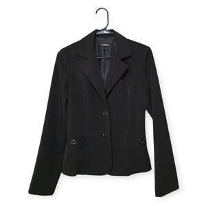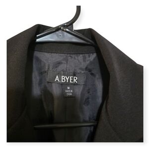 Chic black tailored blazer by A. Byer featuring a flattering structured silhouette and clean, polished lines. A versatile wardrobe staple that transitions effortlessly from workwear to evening or casual elevated looks.