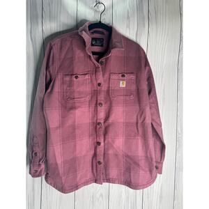 Carhartt Women Size M Loose Fit Twill Shirt Chore Jacket Shacket Pockets Pink
