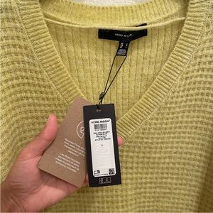Vero Moda Waffle Knit V-Neck Sweater Women’s Large Yellow Green NWT