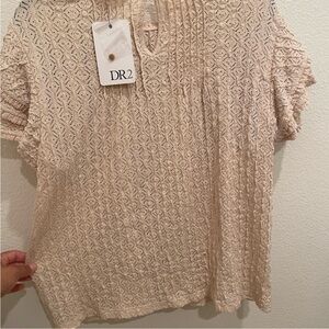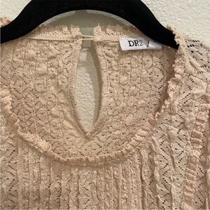 DR2 by Daniel Rainn Lace Ruffle Sleeve Top Natural Beige Size M NWT